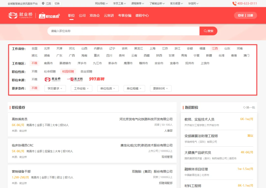 专属就业桥链接: https://nchs.jiuyeqiao.cn/