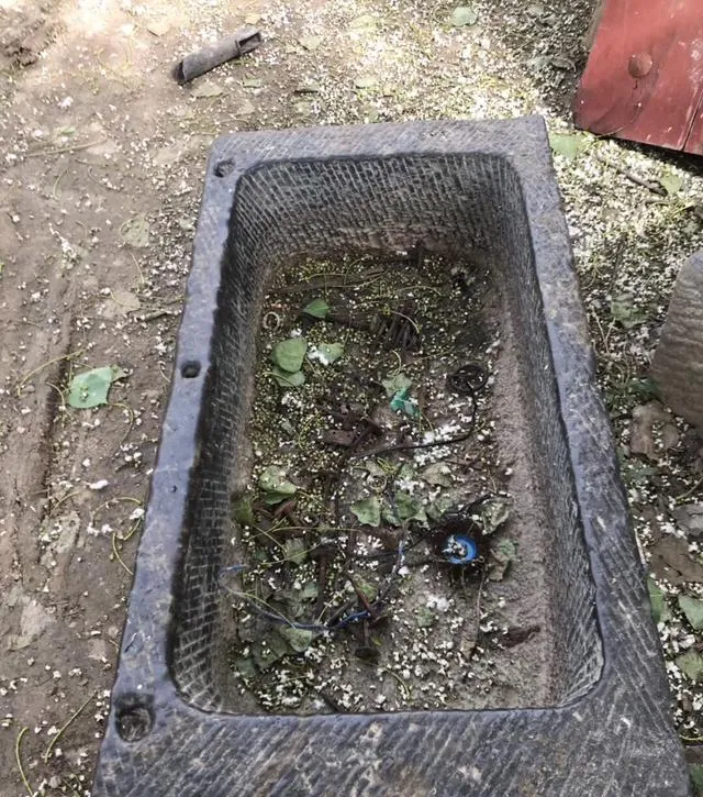 第二张这个石头家伙,粗看像废弃的石盆,其实是石槽。喂牛、喂马、喂驴,后来不少人家养猪也用它。它的分量特别实在,放院子里一摆,风吹雨淋也不怕。小时候去农村,院角常能看见这么个大家伙,里面不是草料,就是泡着猪食。现在再看,槽里落叶、铁丝、泥水混在一起,突然就有点空落落的——东西还在,那个院子里的热闹没了。