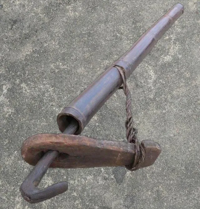 这一组细长的木杆铁钩,看着简单,名字却各地叫法都不一样。有人叫绳钩,有人叫水担钩、挂钩。它最妙的地方就是顺手、结实,捆稻草、挂东西、挑担子都能派上用场。过去钢材少,木头却不缺,找段合适木料修一修,就是一件能用好几年的工具。你别看它朴素,那时候屋梁上、墙边、担子头上,都少不了这类东西。