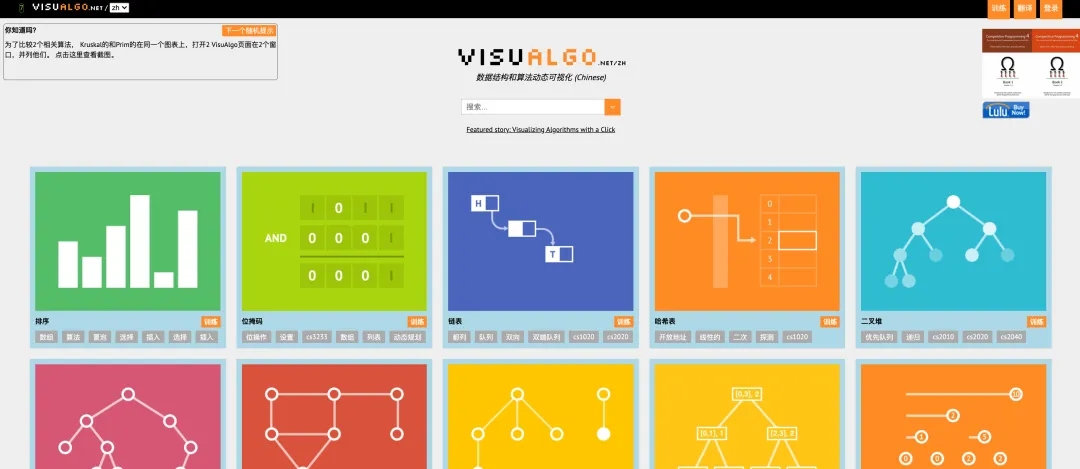 VisuAlgo 提供了排序、链表、二叉堆等数据结构,不多说了,你们自己上去看。