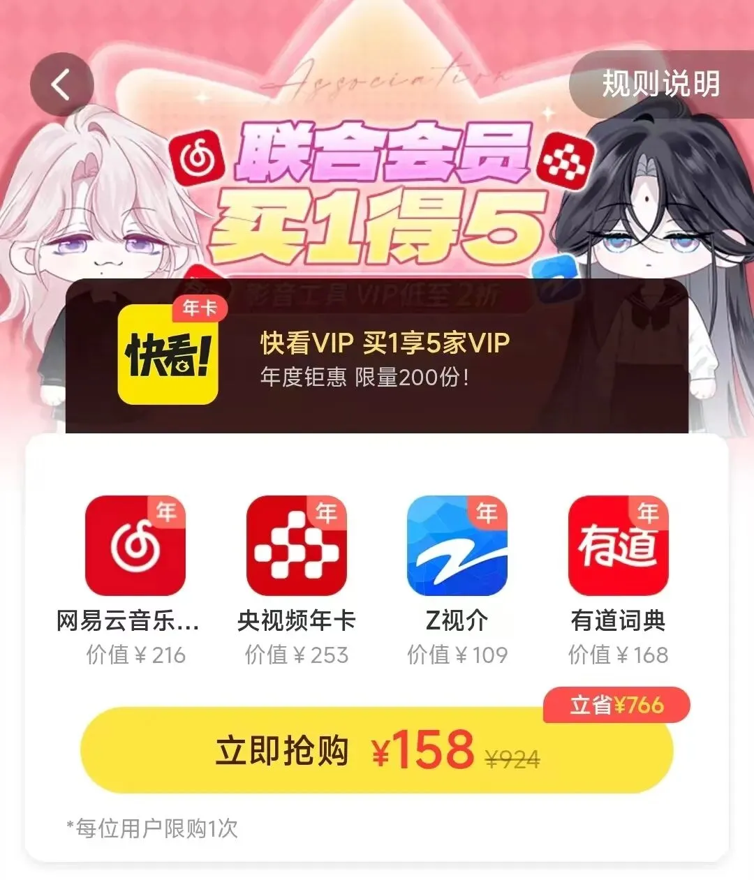 快看漫画- 买1得5联合会员活动