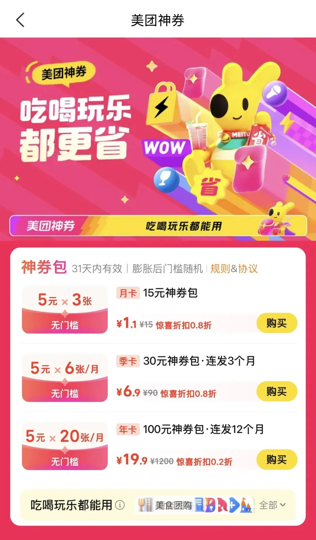 19.9购年卡每月20张5元券