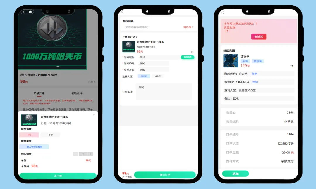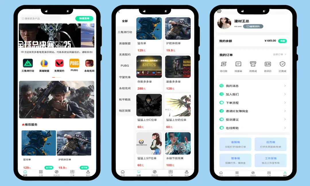 三角洲护航代练代打小程序APP搭建/下单平台开发,多端适配打造,成品开发上线