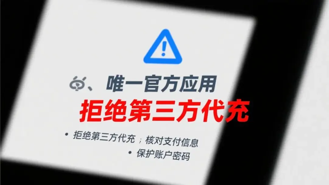 拒绝第三方代充:切勿相信任何声称可以提供“折扣代充”的第三方网站、个人或链接。此类渠道极有可能涉及盗刷、诈骗,会导致您的账号被封禁、财产损失,且无法获得官方保护。