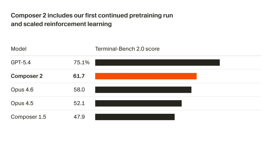 AI编程工具Cursor正式发布第二代自研模型Composer 2,旨在以显著低于竞品的价格提供匹敌顶尖水平的编程能力。该模型输入令牌定价为每百万0.50美元,输出为2.50美元,远低于Claude Opus 4.6及GPT-5.4。性能方面,Composer 2在内部基准CursorBench中得分61.3,较前代大幅提升,并与Claude Opus 4.6及GPT-5.4 Thinking处于同一竞争梯队。其优势源于针对长周期编程任务的强化学习训练,显著增强了复杂工程任务的解决能力。Cursor联合创始人Aman Sanger表示,模型专攻代码数据训练,虽不具备通用任务能力,但实现了极高的成本效益。