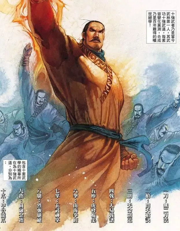 十强武道是武无敌自创的十种武功,他凭借这十种武功打遍天下无敌手,第二部大BOSS帝释天就曾被武无敌用这套武功暴打一顿,然而第三部武无敌出场时,连人带武功疯狂掉价,到了后期这套十强武道竟然被各种武功吊打,实在称不上无敌。