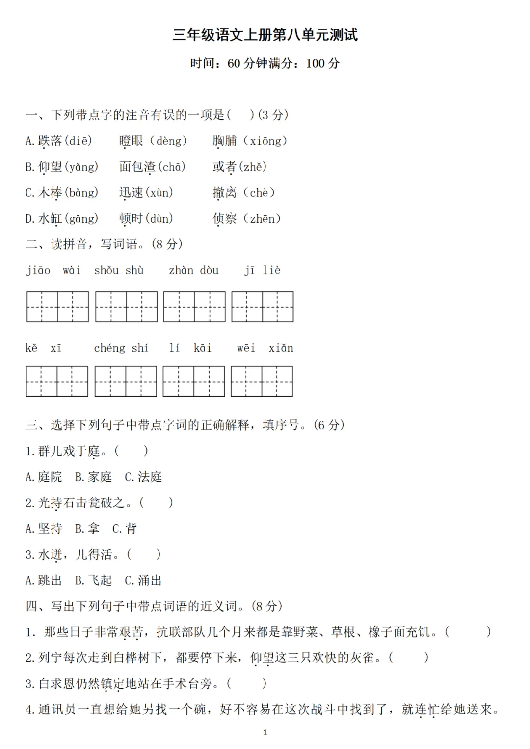 ▍更多内容请关注公众平台:小学语文预习 ID:xxywyx100