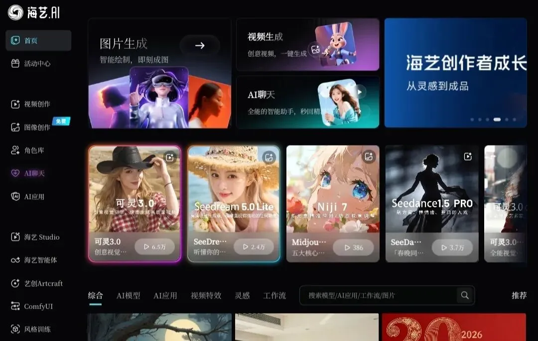 功能覆盖图文、视频、智能交互三大场景,不管是做海报、做短视频、写文案,还是日常AI辅助,一个平台全部搞定,对新手非常友好。