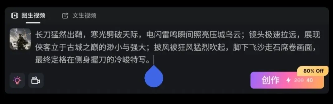 选择「图生视频」,上传刚才生成的图片,输入镜头描述: