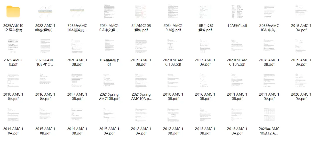 AMC10竞赛历年真题电子版合集(10年-25年)!