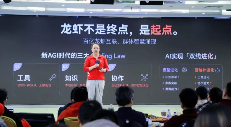 而这,只是这只名为“OpenClaw”(俗称“龙虾”)的硅基宠物,在2026年开春搅动的一池春水中的一朵小浪花。从北上广深的极客,到二三线城市的数码小白,无数人正埋头屏幕前,享受这种“动口不动手”的快感。腾讯、百度、Kimi的体验区排起长队,场面堪比当年抢购iPhone。周鸿祎甚至亲自下场,在公司园区手把手帮用户“装机”。