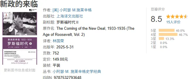 小阿瑟•M. 施莱辛格(Arthur M. Schlesinger, Jr.,1917—2007)美国最具声望又富有争议的重量级历史学家、政治评论家,同时也是专栏作家、影评人、《财富》杂志和《生活》杂志的自由撰稿人,曾任哈佛大学历史系教授和肯尼迪总统的特别助理;一生中获得过两次普利策奖、两次美国国家图书奖和一次美国历史学最高奖项班克罗夫特奖。