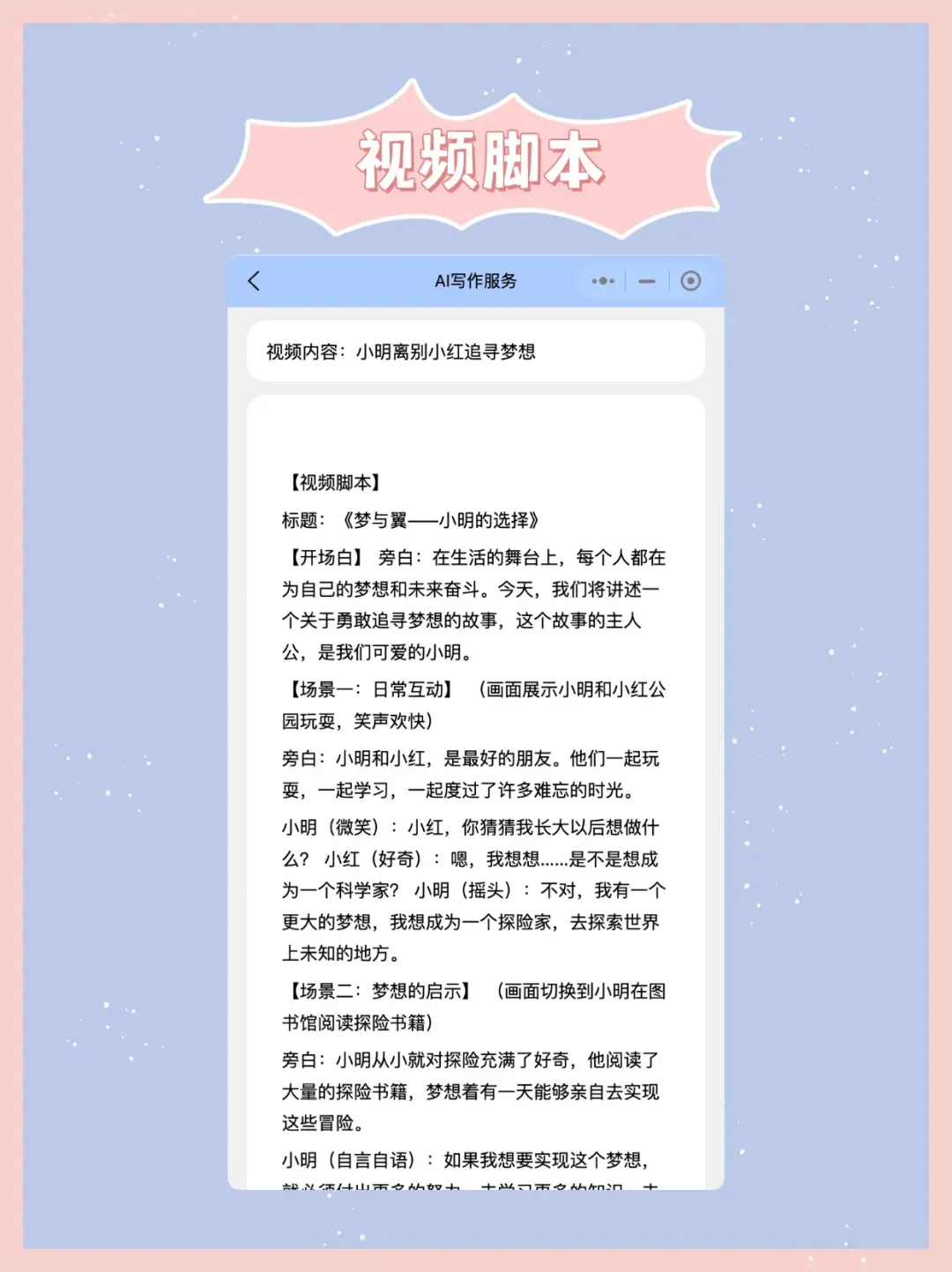 视频脚本生成器👉输入视频主题即可生成视频脚本
