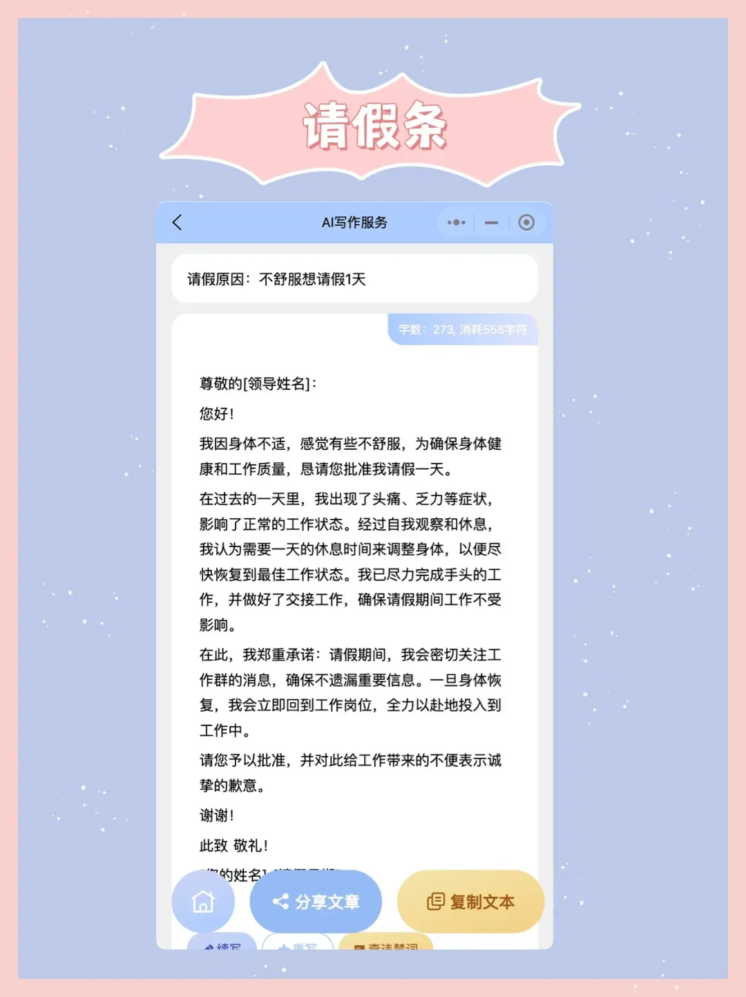 【请假条生成器】输入请假理由自动生成请教条