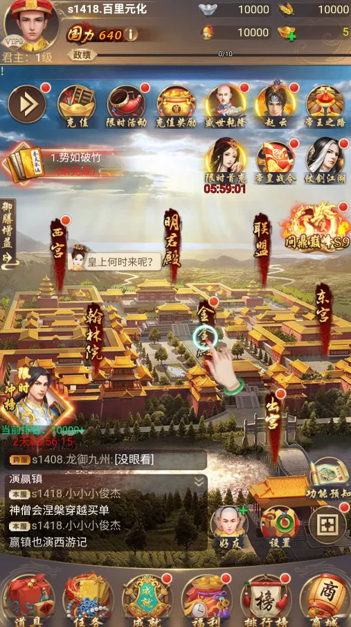 还有校场系统,前期不要想着冲排名,每天打满次数就可以了,就算是输了也是有经验奖励的,积少成多,后期战力起来了再冲排名也是不迟的。