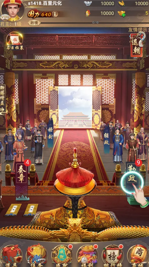 奏事议政每天是必做的,征兵、征税、征粮,不仅可以获得很多的资源,还可以拿到稳定的经验,耗时也短,几分钟就完成了。