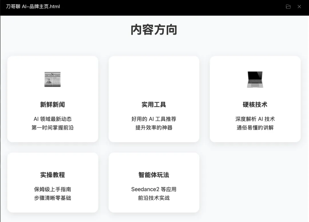 悟空有一个打造IP的技能,于是我让它给我建立个人品牌官网,展示刀哥聊 AI的 IP 形象和品牌主页。