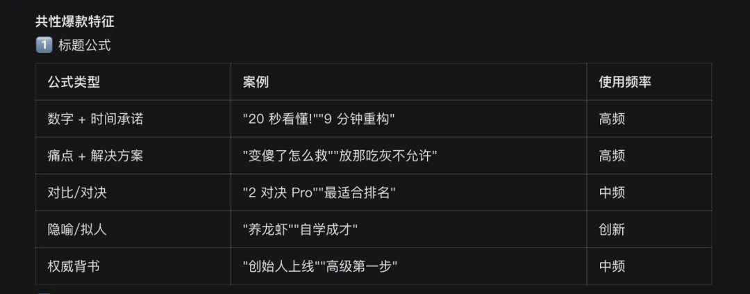 然后,它抓取了卡尔最近 10 篇爆款文章,从内容结构、受众反馈、标题包装、选题跟进四个维度进行深度拆解。