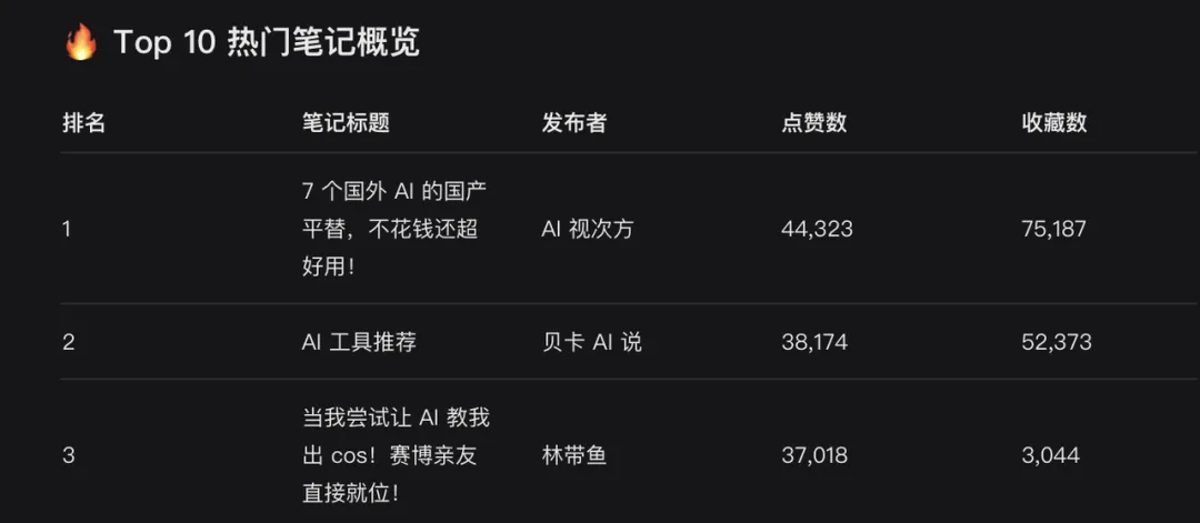 使用 小红书热点 这个技能,追踪国内最热的 AI 工具。