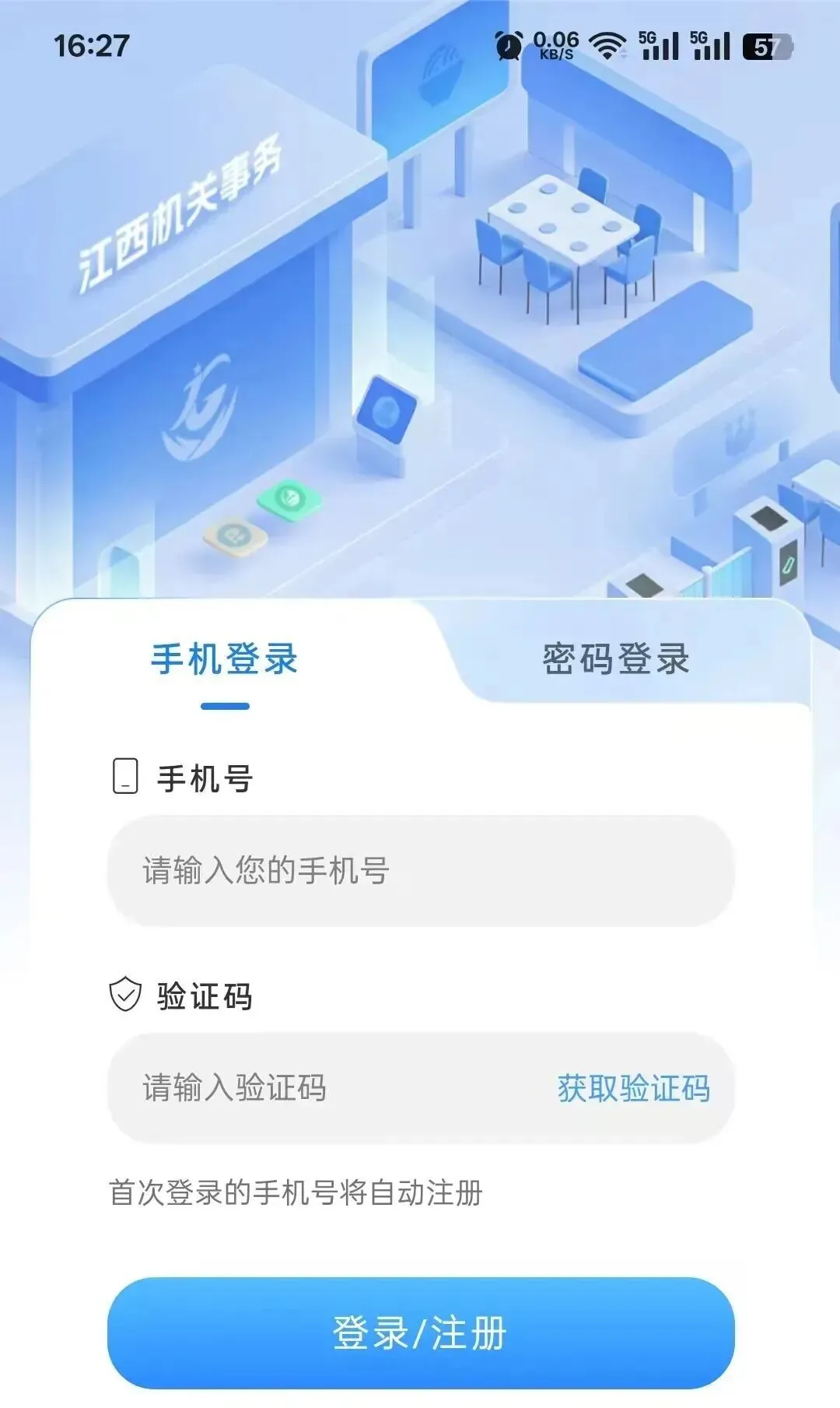 通过APP或微信小程序端进入“江西机关事务APP”登录注册页面后输入手机号,首次登录将自动注册。