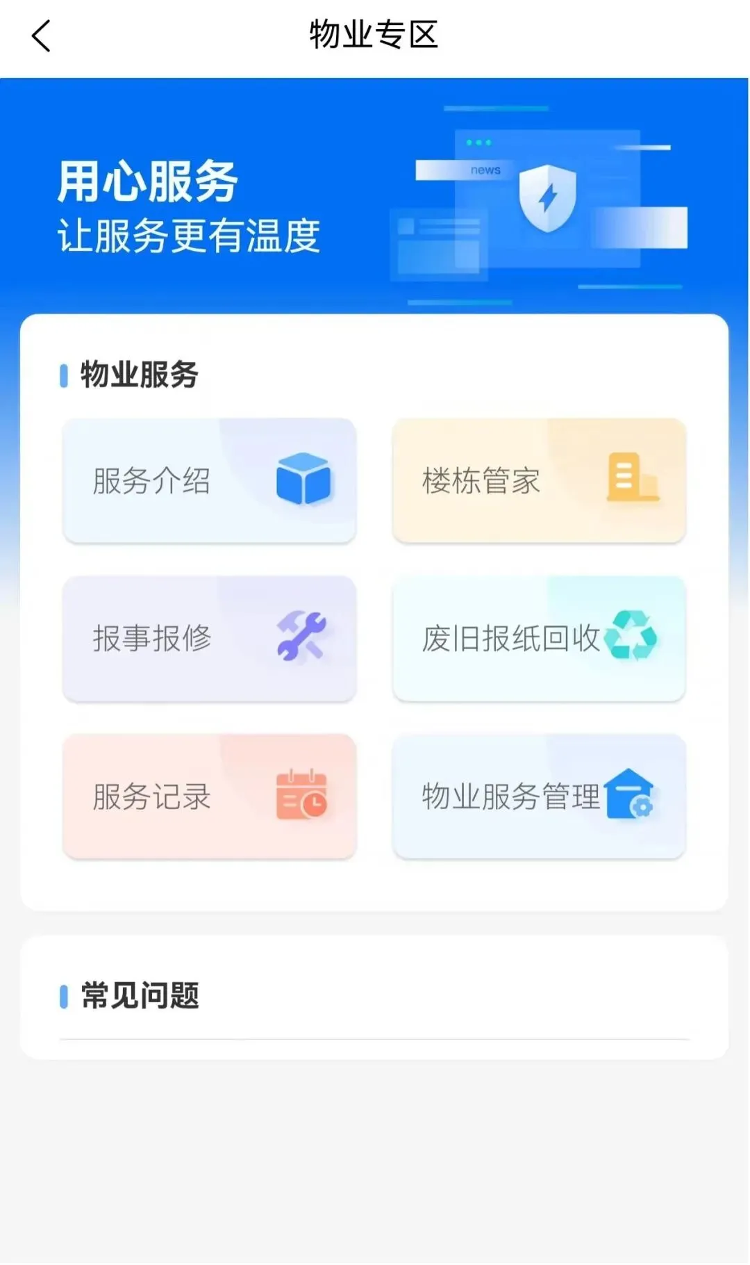 7. 物业服务:干部职工可通过“物业服务”拍照填写相关信息在线提交反馈问题,楼栋管理员及时接收、处理、反馈,并可实时追踪维修进度。