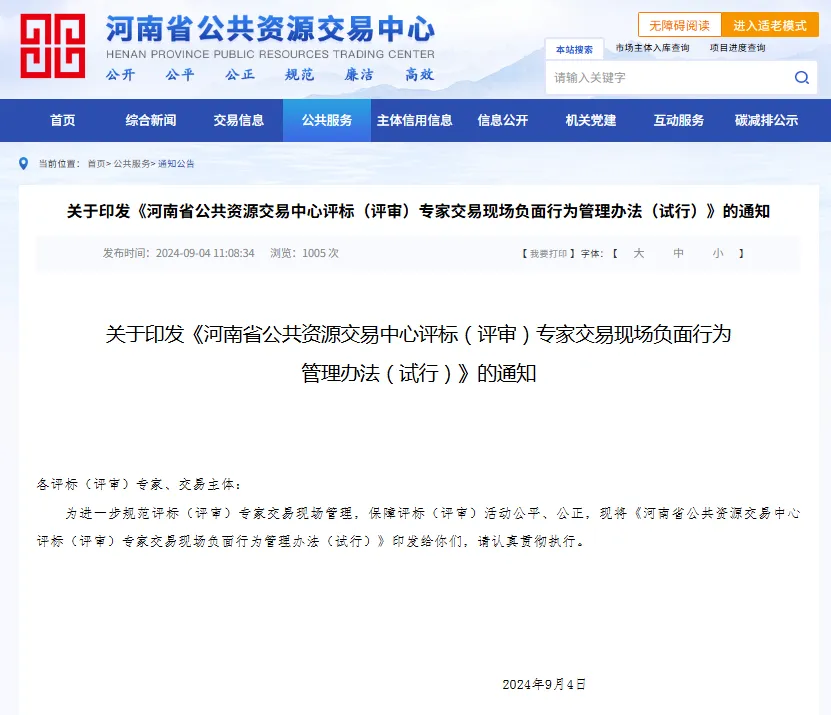 关于印发《河南省公共资源交易中心评标(评审)专家交易现场负面行为管理办法(试行)》的通知