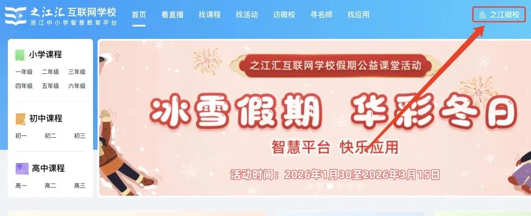 第一步:之江汇地址:https://szyx.zjer.cn,进入右上角的“之江微校”。