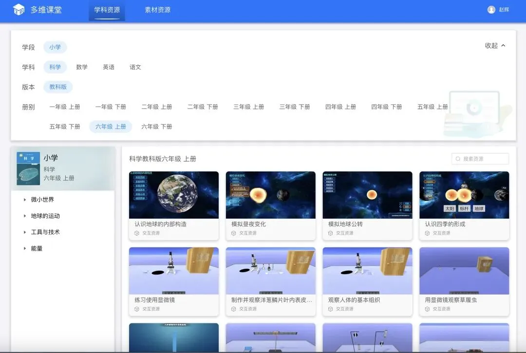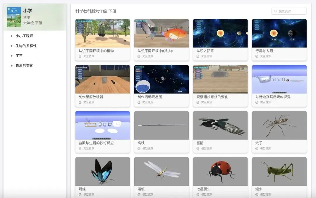第三步:进入虚拟实验,里面有2个部分内容。1是学科资源,2是素材资源。