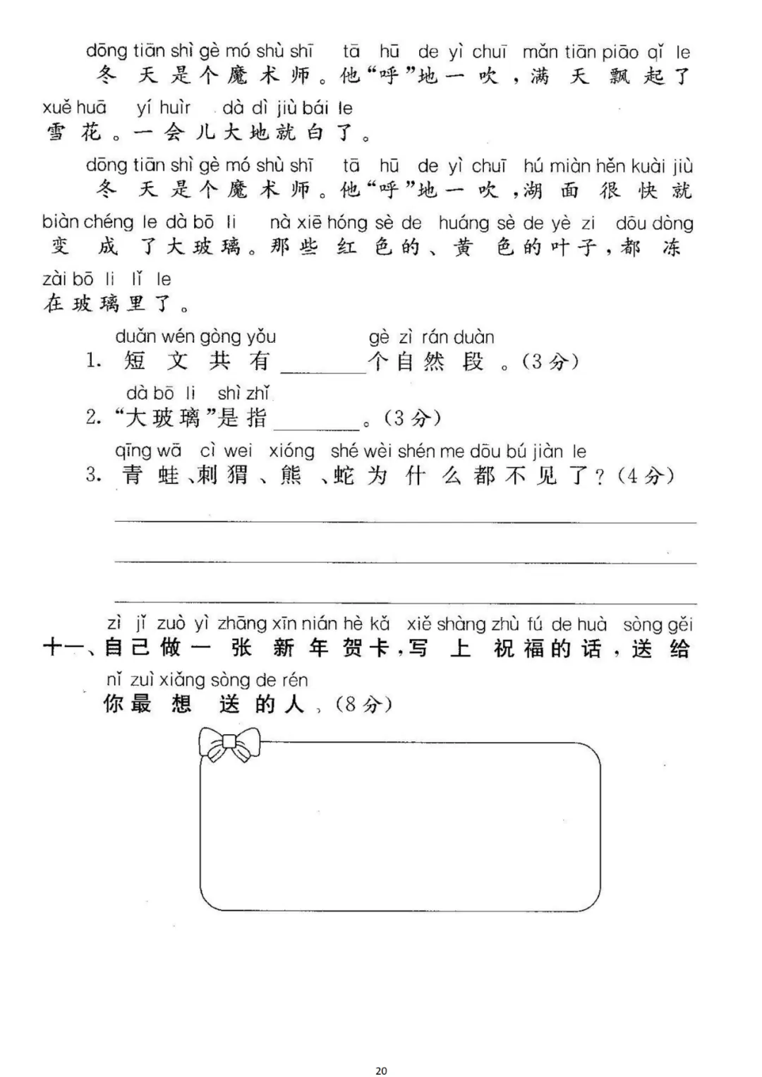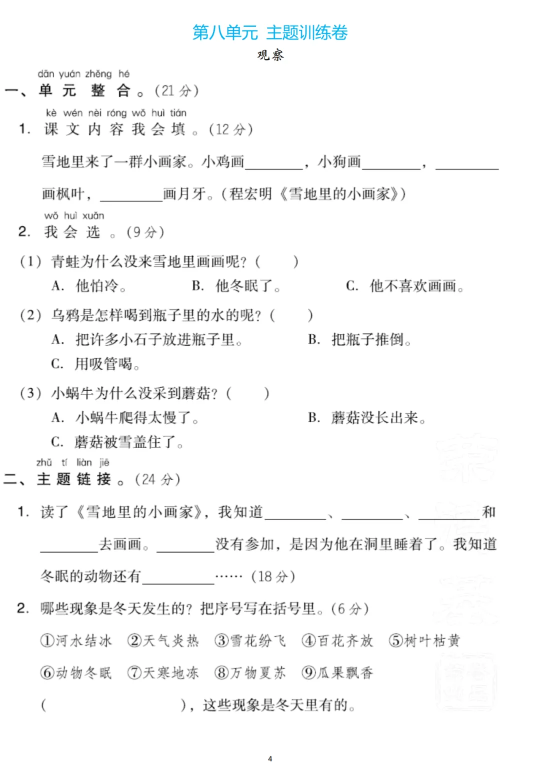 一年级(上)第八单元检测卷5套,可下载! 免责声明 1.本公众号部分转载的文章、图文、视频来自网络,其版权和文责属原作者所有,若来源标注错误或侵犯到您的权益,烦请告知,我们将立即删除。 2.本公众号编辑部工作人员的原创文章,其版权属于我们微信公众号所属主体。 3.本公众号特约稿原创文章,其版权和文责属作者所有。 4.若要转载原创文章用于商业用途,请联系我们,未经同意不得转载。任何转载请注明文章来源。如有问题,请联系我们,谢谢! ▍编辑:会飞的小鱼 ▍标签:小学语文预习 ▍商务合作微信:JJYYshangwu ▍更多内容请关注公众平台:小学语文预习 ID:xxywyx100
