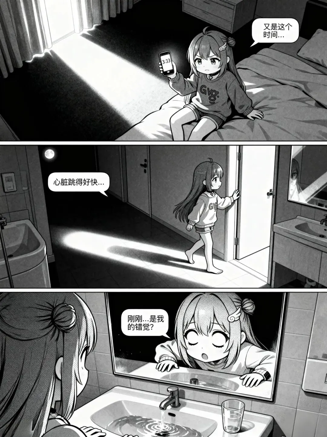 镜中人这才仓促跟上动作,同步如常,仿佛刚才那诡异的滞留,只是水汽氤氲下的错觉。