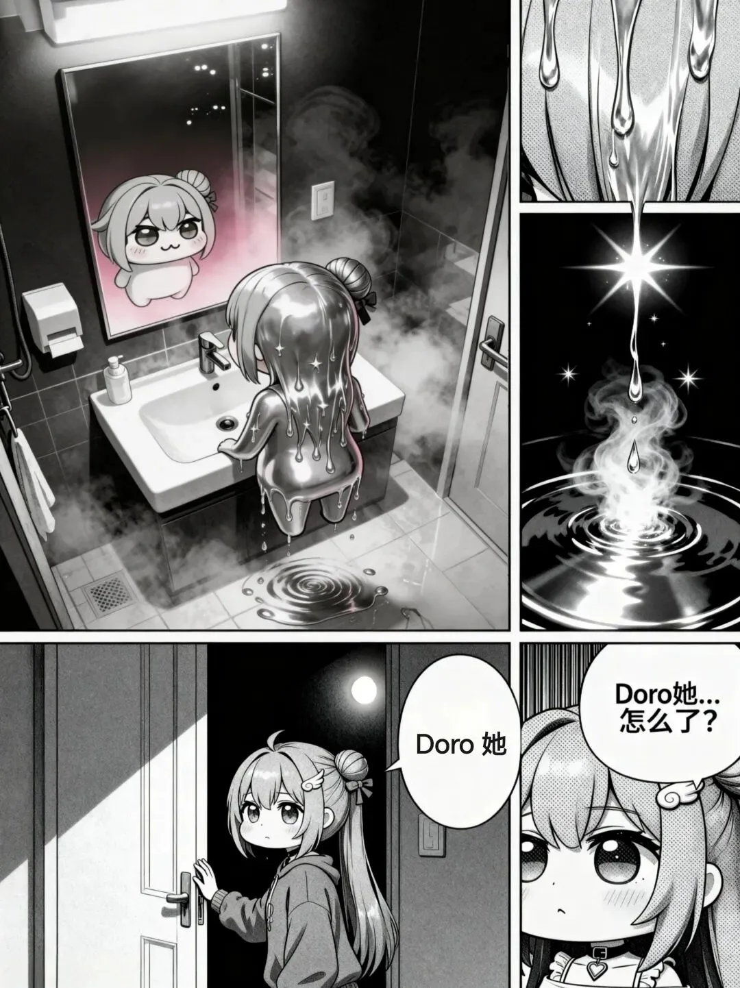 睡宝悄悄靠近,看见Doro站在镜子前,浑身湿透,