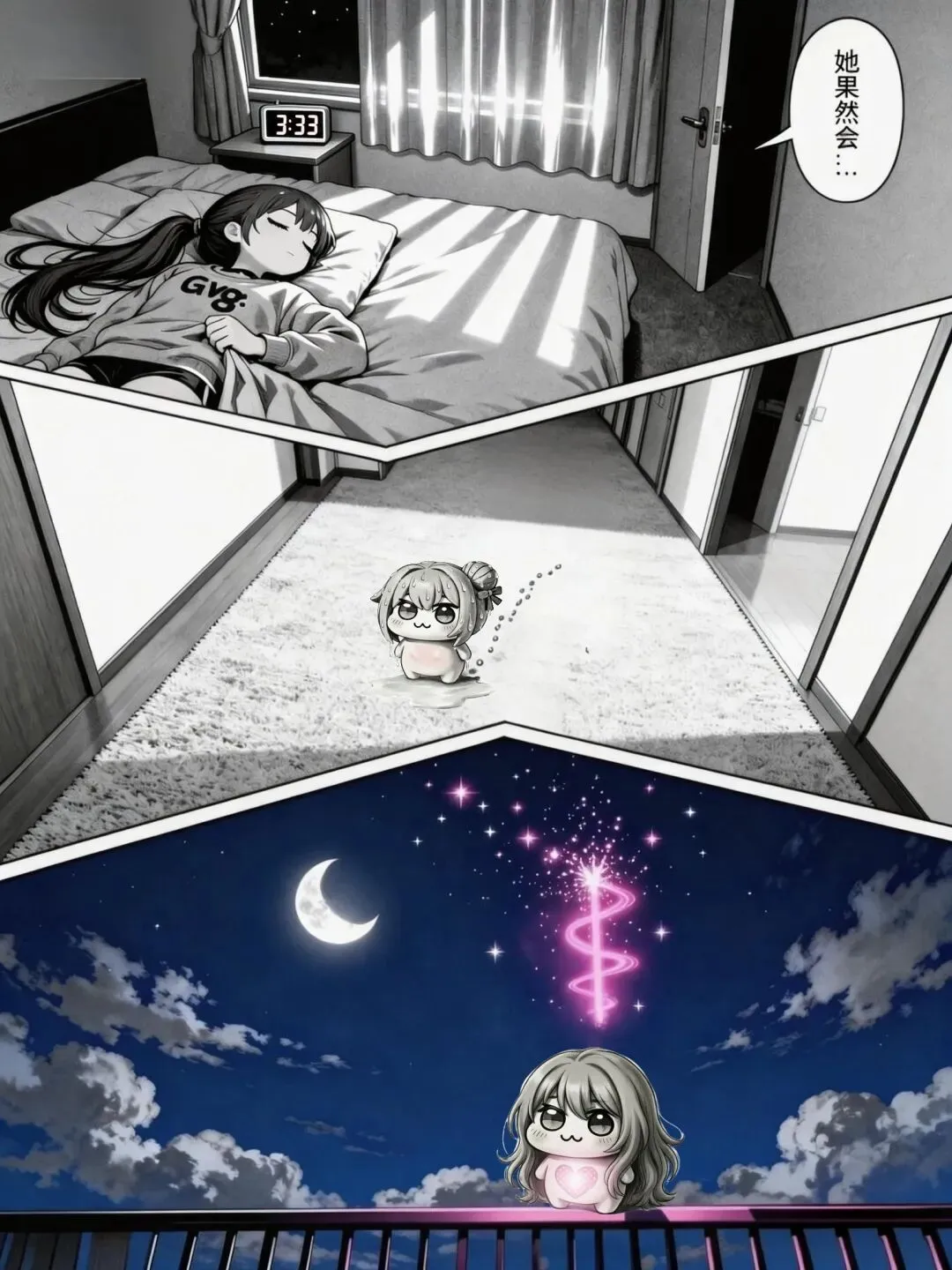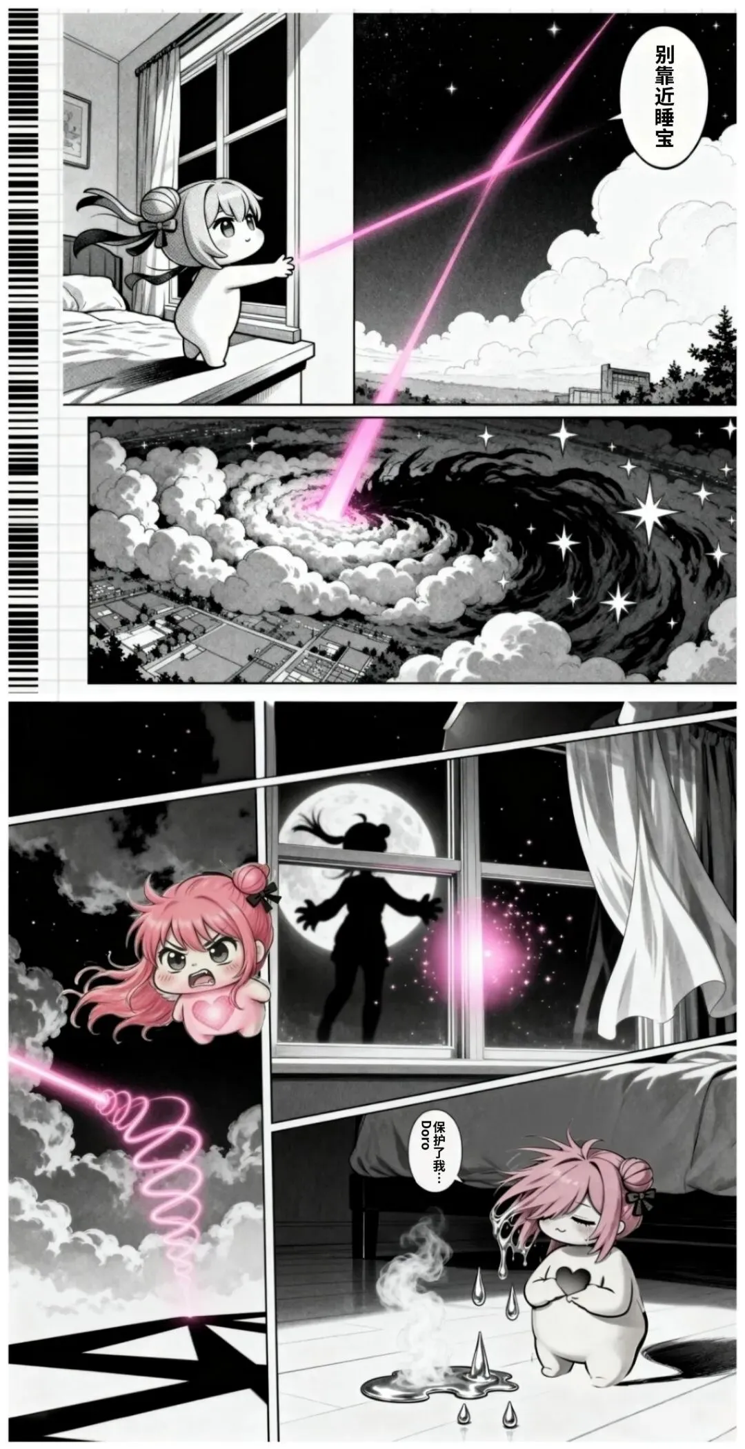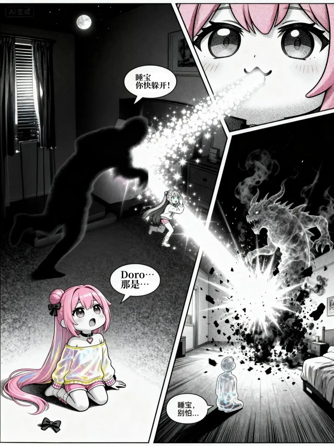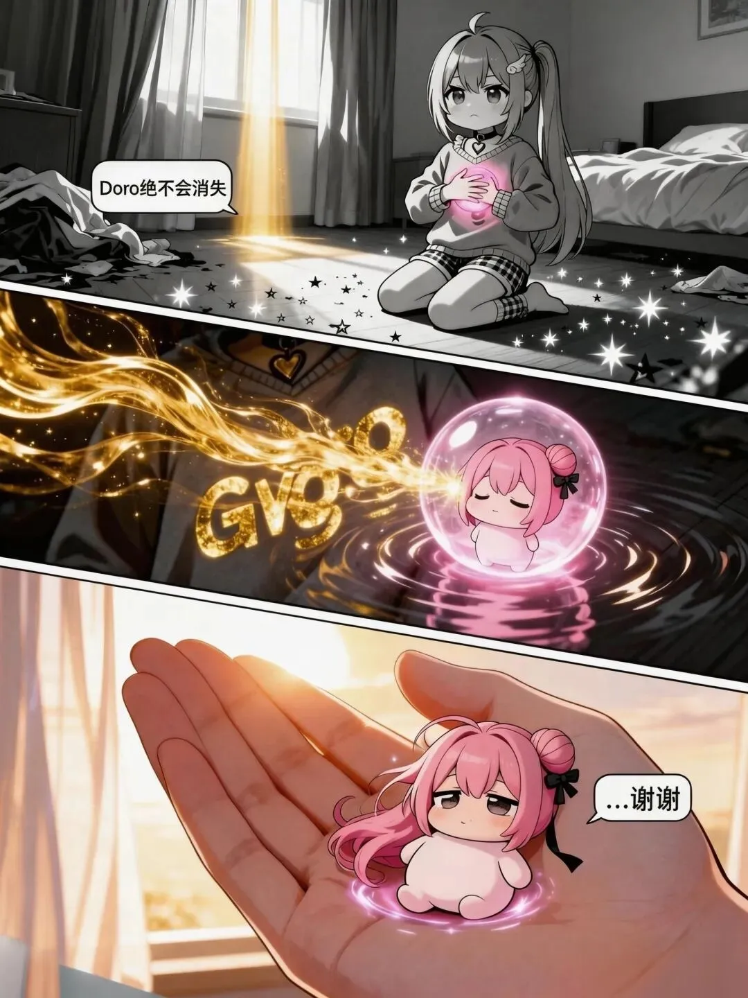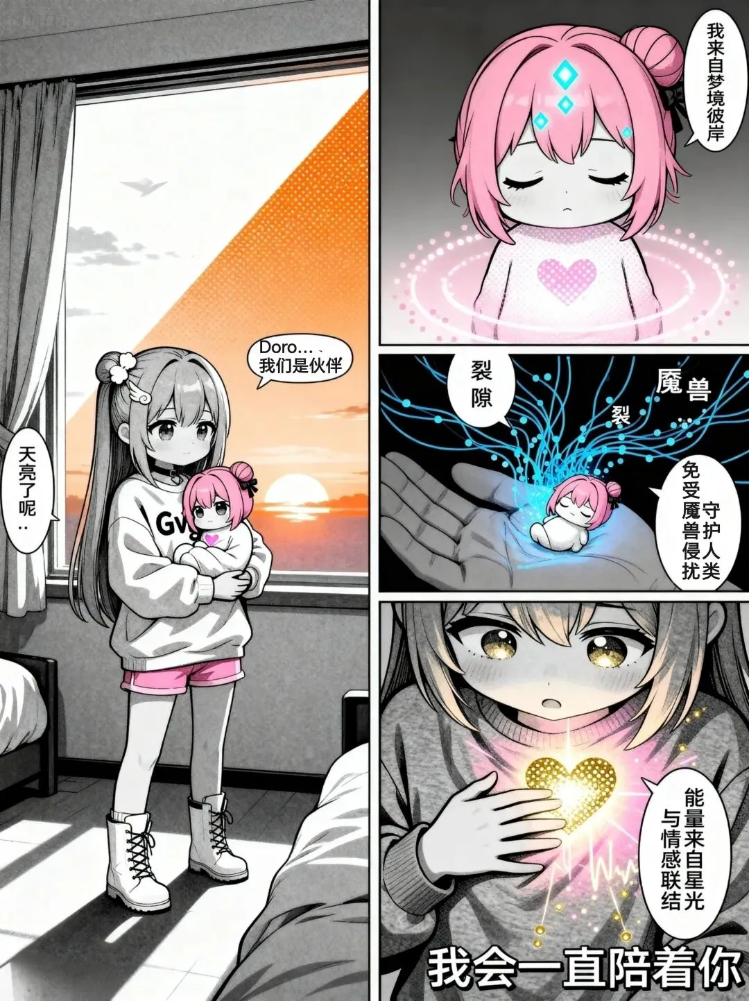 睡宝没有说话,只是把Doro抱得更紧,下巴轻轻搁在它散开的头发上,感受着彼此心跳的共振。