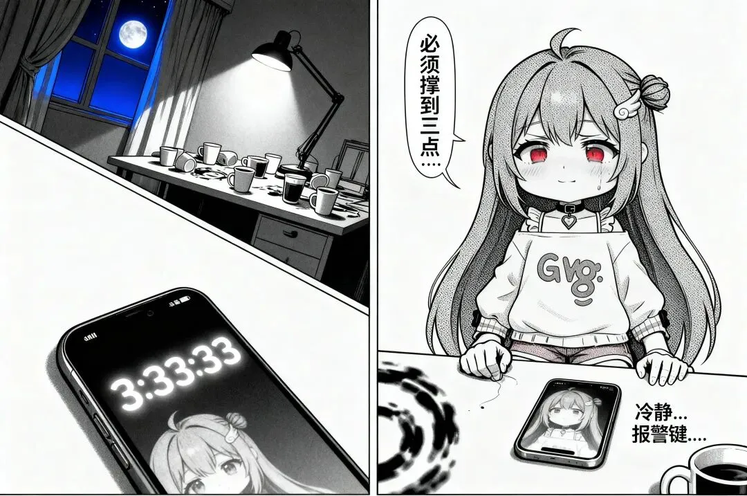 她喝了三杯咖啡,凌晨3:33分死死盯着Doro。