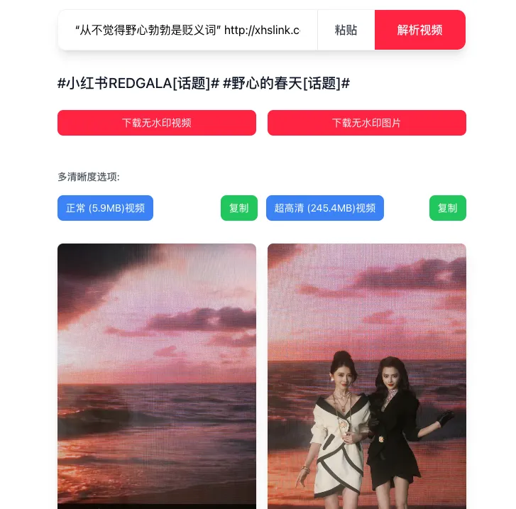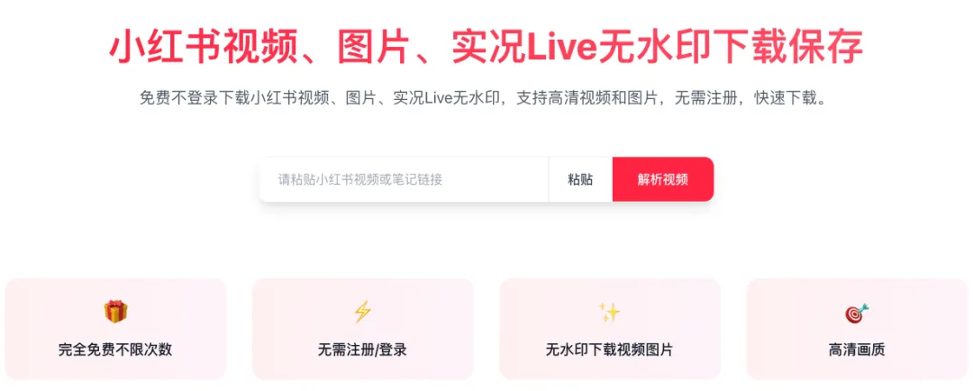 小红书:视频、图片、实况Live一键保存,笔记里的多图多视频也能精准解析,还原原始画质
