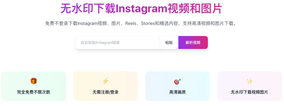 Instagram:帖子、Reels、Stories、精选内容、轮播帖子全覆盖,图片视频都能无水印提取