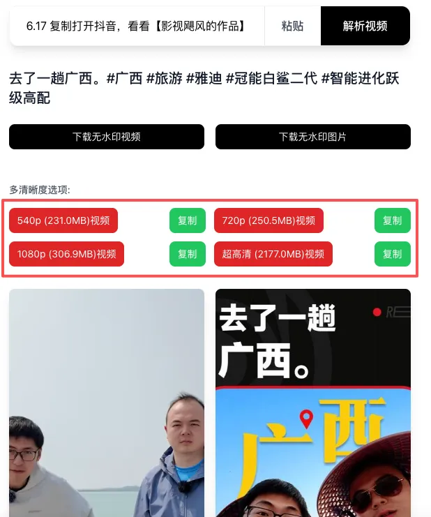 不管是视频还是图片,解析后彻底去除平台水印,视频保留原画质、原声轨,图片还原原始像素,做素材、做收藏、做二次创作都超合适,再也不用忍受压缩模糊的内容!