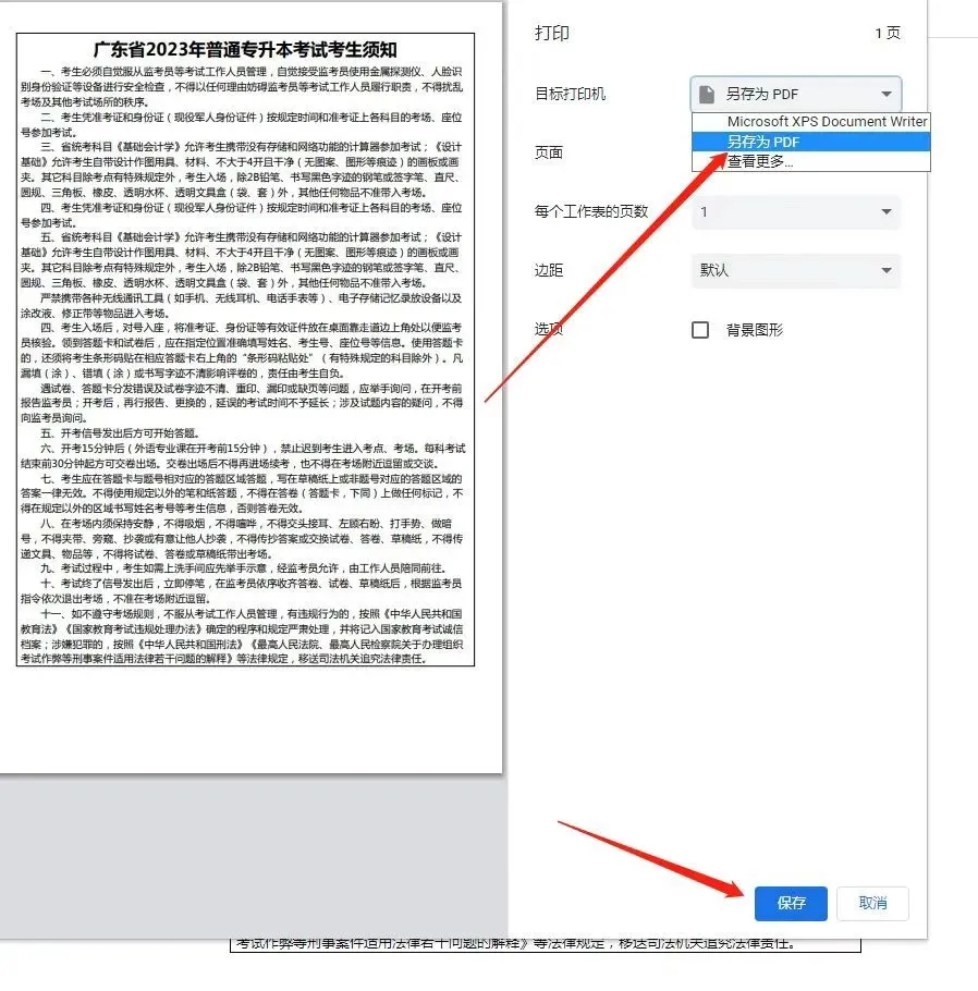 第四步:点击【保存】,选择【另存为PDF】,保存即可。