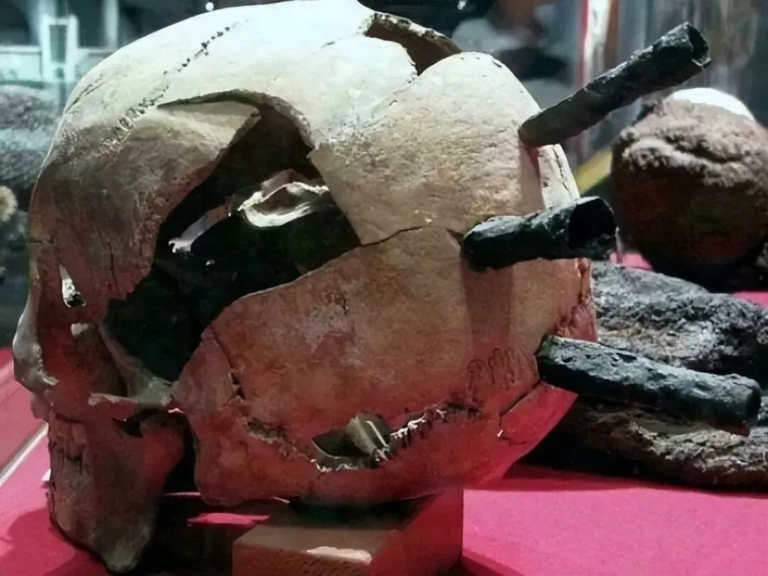 1、1361年在瑞典维斯比城(哥特兰岛)战役中阵亡的一名男子的头骨中发现的箭头