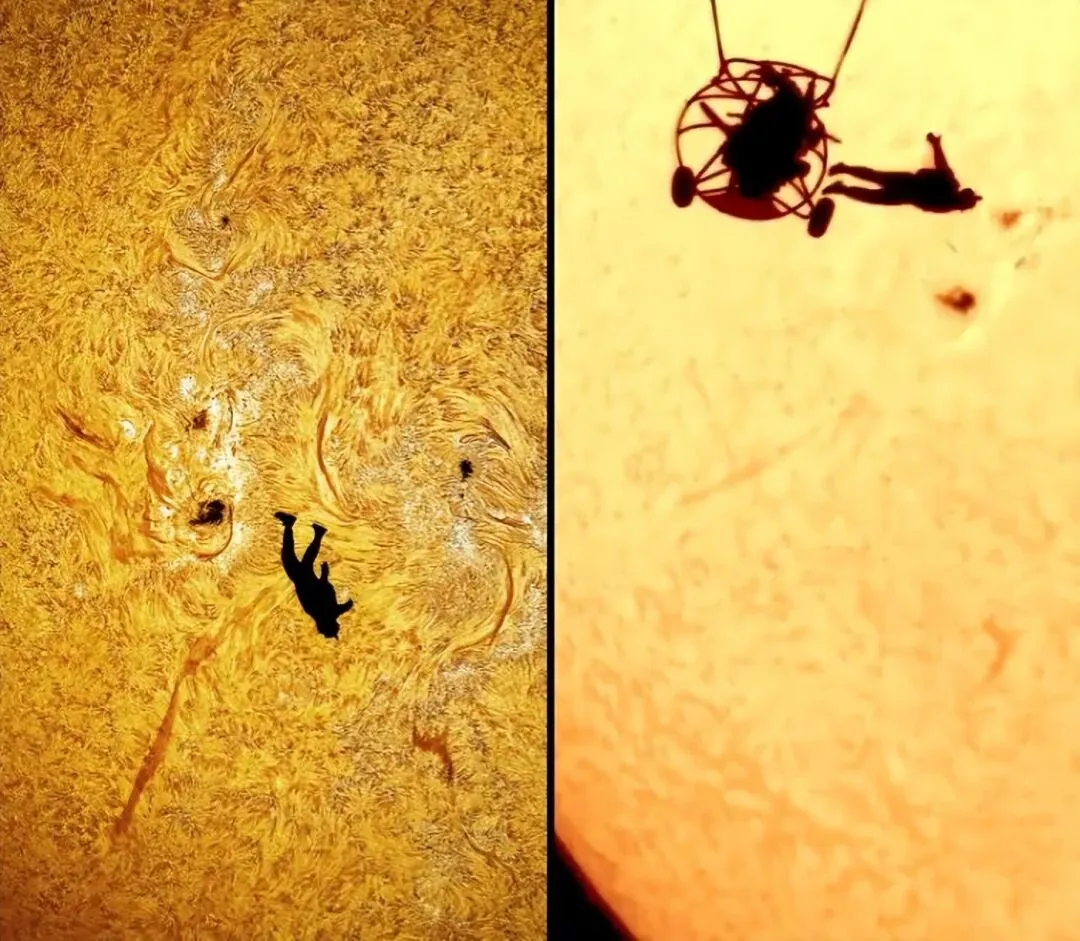 9、这是一张真实的照片,照片里的人也是真人,背景是太阳。这张照片是安德鲁·麦卡锡在他朋友跳伞时拍摄的。