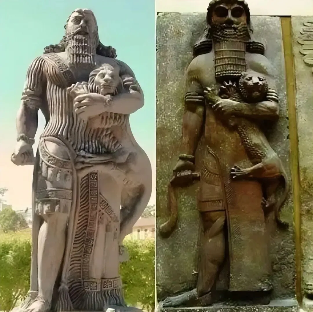 2、在卡拉汉特佩出土的距今11000多年的7英尺6英寸人形雕像侧面像