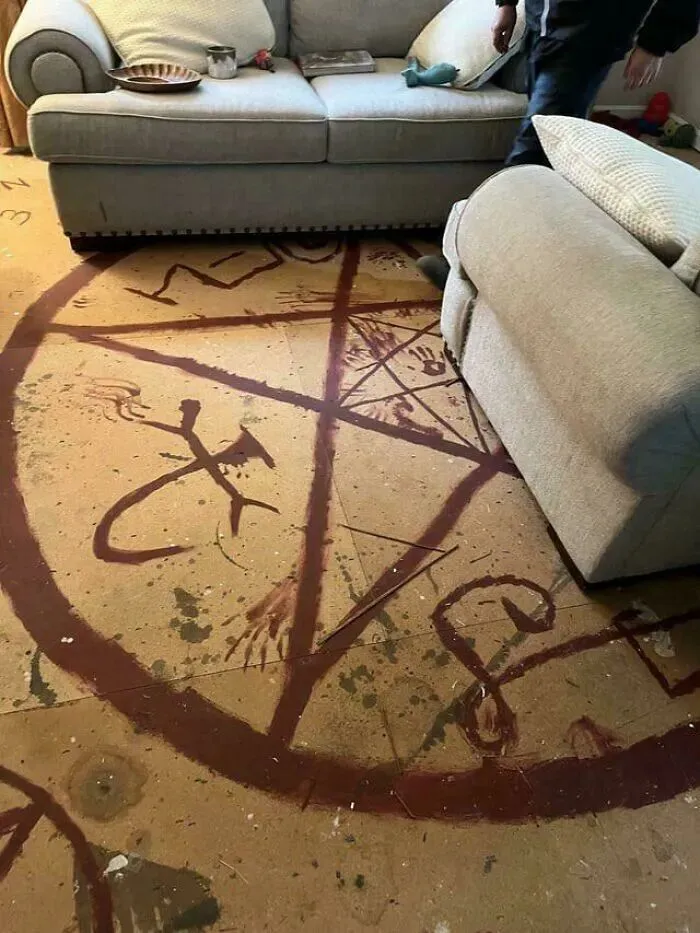 15、一名男子在重新装修房子时,发现地板上画着这个字。有人知道它是什么意思吗?
