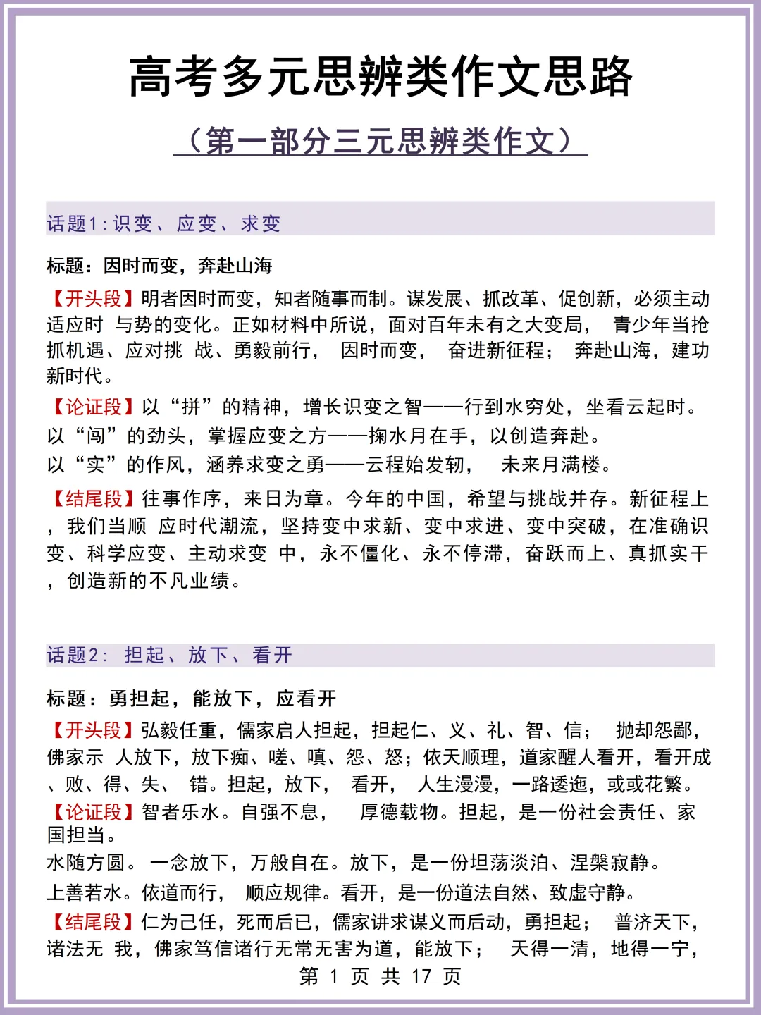 今天给大家整理了三年都用得上的【高考多元思辨类作文思路】,基础不好,高中三年有这一份就够了‼️