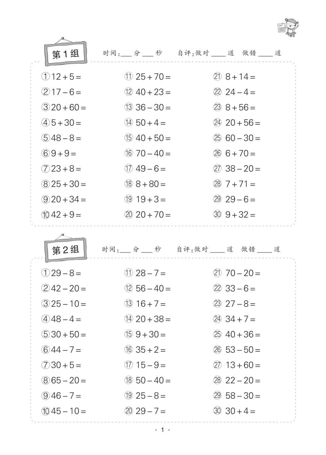 小学数学1-6年级《口算题练习》,可免费下载打印