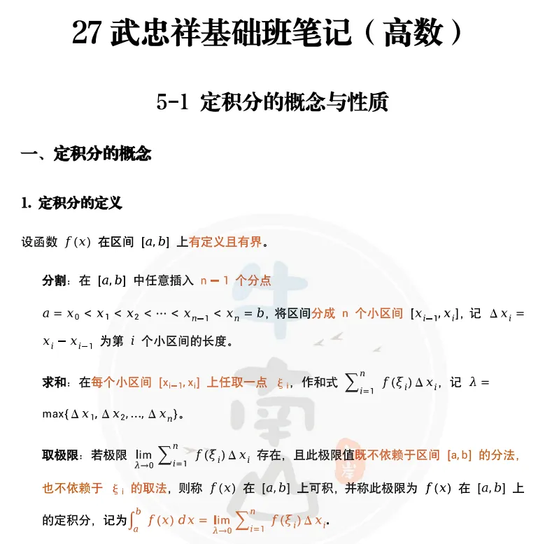【27考研武忠祥基础班笔记pdf】