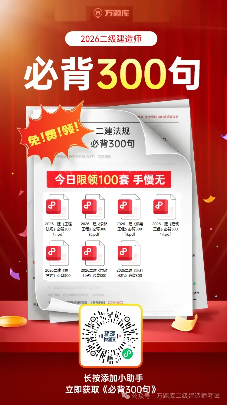 免费领!2026年二建必背300句pdf