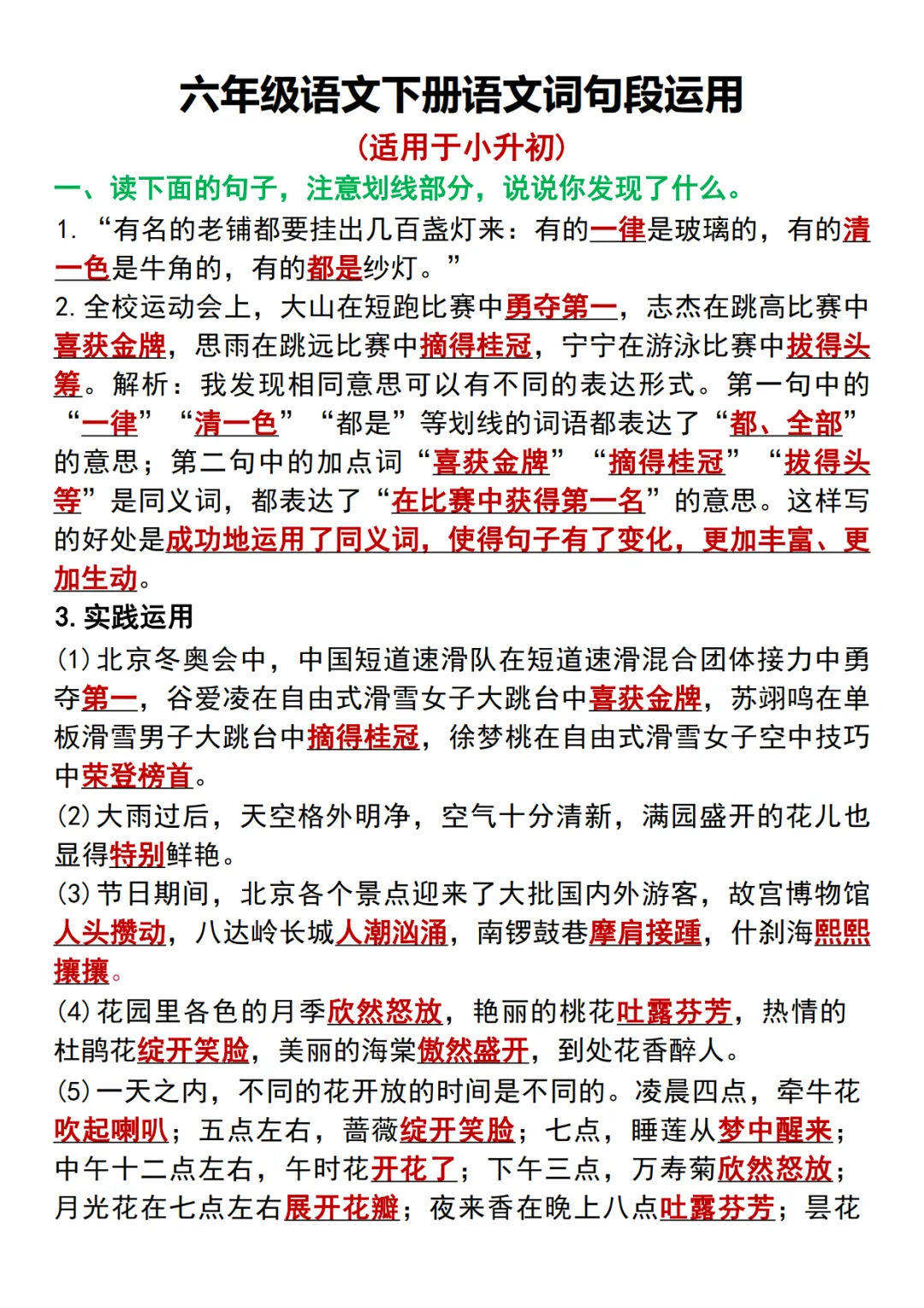 六年级下册语文词句段运用专项汇总,电子版可打印 ↓↓↓更多学习资料点击下方小程序 ↓↓↓ 版面有限,不过多展示 需要直接点下方领取 完整电子打印版领取方式 ▲点击上方 儿童英语口语 在公众号消息框发送: 7460,即可领取