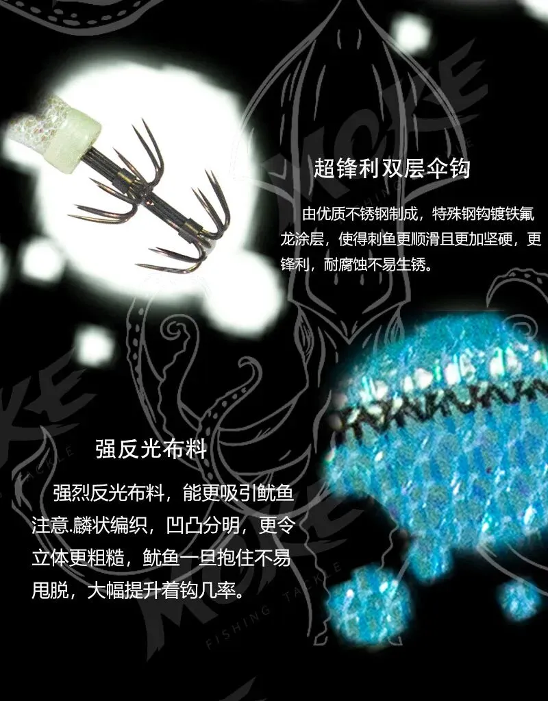 钓鱿鱼的关键,在于“隐蔽”与“诱鱼”,墨客迷彩布卷鱿鱼钩精准拿捏这两点,专为春季鱿鱼习性优化设计,堪称鱿鱼垂钓的“神器”。