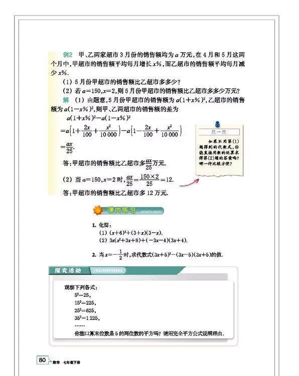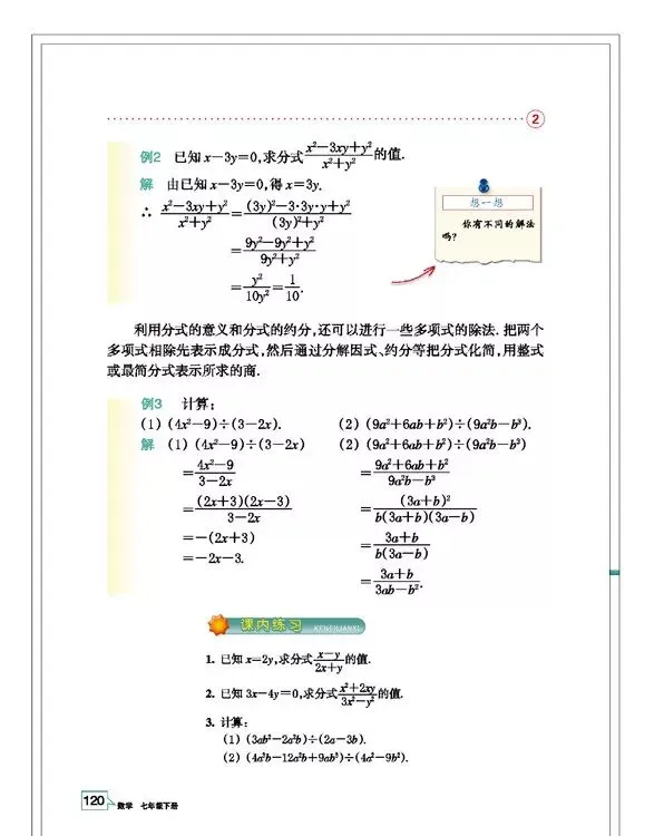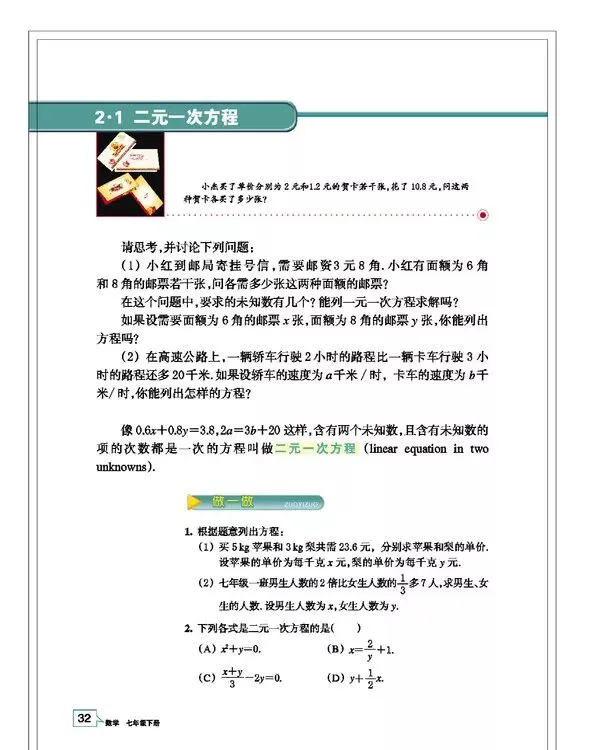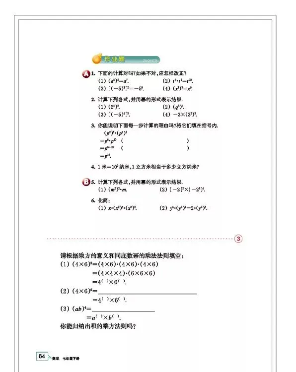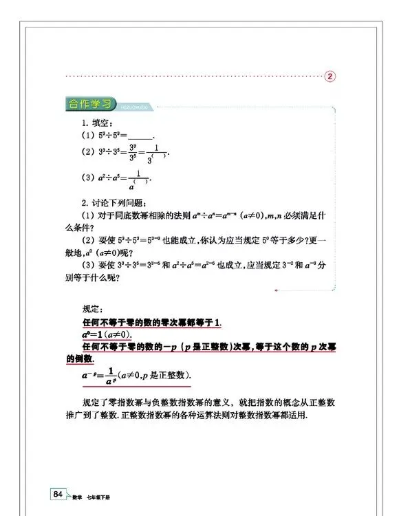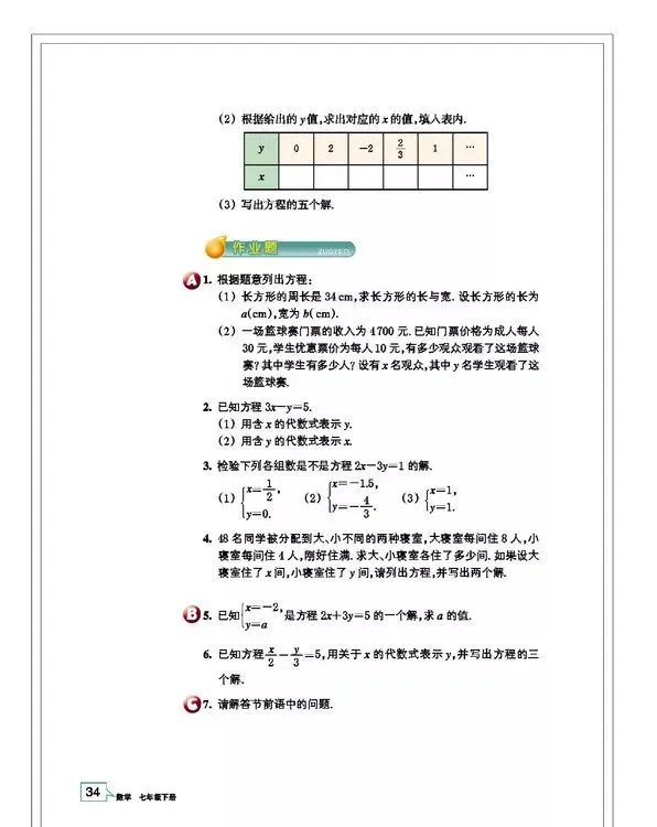 浙教版七年级数学(下册)教材高清电子版