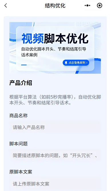 输入你的原始脚本/创意 = AI根据平台算法自动优化结构
