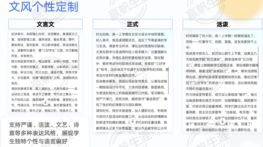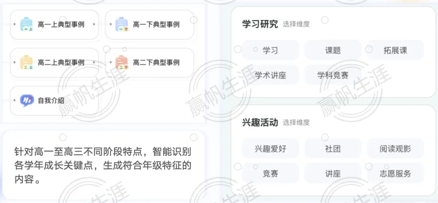 不同于市面上通用的AI写作工具,“墨核伴学”坚决摒弃千篇一律的模板和空洞无物的套话。它依托赢帆十三年来在升学指导领域的丰富经验,以及经过深度训练的万篇真实案例,凭借对上海高中生涯活动的深入了解,精准识别上海高中生的成长路径。无论是社会实践经历、学术兴趣倾向,还是领导力展现、创新潜质挖掘,它都能系统且智能地匹配高校关注的核心要点,进而生成更契合上海高中生成长轨迹的综评内容。